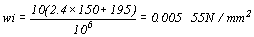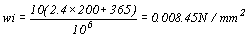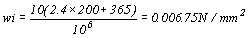 襯板(sheathing)必須足以承受靜載重(dead load)與施工活載重(live load)的組合載重(combined load),若每m2承受組合載重kg時,以kg/ m2表示,為換算為SI單位,重量kg必須乘以9.807,因9.807接近10,故得使用10;面積每m2必須除以106,改為N/mm2,則1mm2單位載重wi為