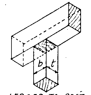 依設計例八,臨時支柱總載重為19 206N,使用40級紅木支柱,在木紋與所受應力平行時,其臨時容許載重為1.65N/mm2,故在有效長度內之最少容許斷面為19 206/1.65=11 640mm2,倘使用方形角材,其每面寬度