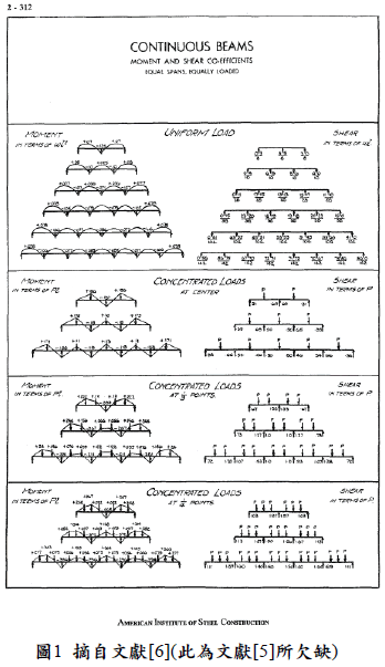 自1859年經多次改進的計算尺問世後,直到二十世紀的60年代初期,全球的工程師可說人人一把這輕巧的利器。而且尺不離手,拿它來解決一切計算的問題。可是計算尺僅有三位數的準確度。隨後電池型計算機的出現,直接淘汰了計算拉尺。計算機的優點是只要將複雜的計算數字與聯結符號輸入,如果資料輸入正確,瞬間就可以得到正確答案。其缺點是答案只能顯示在計算機螢幕中,使用者必須抄錄到計算紙上,謄寫整理成計算書。倘若幸運發現答案錯誤,必須用橡皮擦或立可白,從錯誤的地方開始重新計算。換言之,學習者花了許多的時間練習漂亮手寫,培養小心與專注力,只是為了應付未來的考試。除了在學習過程中必須浪費大量時間外,所有的成果都呈現在紙本計算書上,當面臨下一次相同案例不同數字的狀況,只能做為計算流程參考,而無法直接應用。由於土木設計實務上採用的工具已提升為電腦搭配適合的應用軟體進行,大幅縮短設計時間,也導致現代的設計規範為求得更精確的設計成果,將以往簡化的假設條件及設計公式變得更為繁複。如果要單純以計算機完成設計,將會緩不濟急,無法達到現代土木建設所要求的效率。在早期的美規鋼結構設計規範AISC[5]中,除了基本公式外,採用了大量的圖表,甚至還附了「BEAM DIAGRAMS AND FORMULAS」(詳圖1,此部分的展現方式,甚至超越常用的土木建築力學設計手冊P87-P94[7]),與其說是設計規範,不如稱為設計應用手冊更為貼切。原因是當時工程師常使用的計算器,就只有簡單計算功能的計算機而已。作業方式就只能在紙上作業,先簡化實際結構系統成為最簡單的模型→連續梁,接著就利用翻閱AISC,尋得答案需求的算式或數值,手按計算機得到結果後,再騰寫在計算紙上。此種耗時易錯的作業流程,也間接造成土木人學習上的障礙。在當時也只有美國規範才具備詳盡的圖表可查,工程師若不熟悉英文,在從事結構設計時極有可能誤用圖表,造成遺憾。現代由於電腦的威力強,結構分析仰賴簡化的程度是大幅滑落了。學習首重提綱繫領、脈絡分明、容易聯想連貫。我國土木設計規範主要源於美國規範,譬如耐震設計規範主要脈絡源自ASCE,鋼構規範源自AISC,其中我國耐震設計規範所提及之αy為世界首創。此係數在ASCE及AISC中並不存在,故我國鋼結構設計規範在最新版中設定αy=1,如此相關規定便可完全仿AISC了。αy的影響當然包括了分析載重組合時之加成係數,此也是新規範中可以修改地震力E的加成係數為0.8的原因。現代規範所要求的載重組合數,針對不同荷載組合、設計方法、上構USD或ASD、下構配筋USD或ASD、基礎容許力檢核等不同需求,載重組合總數甚至達到幾百種。如此龐大的結構分析工作量,是過去使用計算機搭配紙上作業所望塵莫及的。土木工程師在學習過程中,為適應現代規範的改變,若還停留在採用計算機來吸取學習經驗,恐淪落緣木求魚的陷阱中。 三、現代學習工具的進步 土木工程的設計決定了技術的先天條件。日益精良的測量技術、土壤鑽探技術、測震技術、探風技術、…同時讓土木設計無法再如過往滿足於過度簡化的假設設計條件。過去以數個斷面的平面結構分析就可以完成的線狀結構體設計,在現代高速電腦及搭配3D結構分析應用軟體的加持下,必須全線結構以3D模型模擬分析。如此不僅可以更精確地掌握住結構行為,也同時避免幾個斷面便模擬出整條結構的材料浪費,提昇了經濟效應。隨著早期個人電腦DOS作業系統發展到目前常用的WINDOWS作業系統,多工同時運算及快速圖形處理讓結構設計常用之應用軟體從唯一的文字交談界面與文字混合簡單圖形輸出,提昇成智慧動態圖形介面的輸入與輸出方式,親易近人的使用方式,搭配可以自行發展後續操控程式語言API[8],讓土木工程師更能有效地進行結構設計,發揮出建築師天馬行空的創意。譬如目前常用的結構設計軟體SAP2000、ETABS、STAADPRO、MIDAS、…從線性靜動力分析到非線性靜動力分析,甚至先進國家的設計規範檢核,都具備良好的精度、簡易的輸入介面、方便再利用的輸出介面及成果。以往土木工程師花費大部分時間製作的結構計算書、數量計算書、設計圖、施工圖等等的工作,在現代設計軟體標榜幾乎全自動化功能的幫助下,能以最少人力及時間獲得需求的成果。也因此許多學校教師為配合實際工作需要,直接以設計應用軟體結合基礎理論讓土木人進行學習。在學習過程中,也同時配合採用設計應用軟體都具備的輸出及輸入平台試算表EXCEL,進行檢核及驗證。基本上EXCEL可分成幕前工作及幕後工作。幕前工作的使用方法就如同我們在手寫計算書一般,只是將筆換成了鍵盤來做輸入的工作。其優勢是可以擺脫計算機,將每一格的儲存格輸入想要計算的公式或文字,便可快速便利的求得答案。EXCEL所具備的文書功能,搭配優異的圖形表格繪製整合能力,讓以往手寫計算書欲達到工整美觀易讀的苦差事成了輕鬆的工作。甚至發展出許多簡易操作函數,讓簡單的幕前工作能做出漂亮的輸入介面,能將計算書變成一完整的「程式」。所謂的幕後工作,就是可以在幕後操縱每一個儲存格的程式,以EXCEL而言就是指其所具備的幕後程式語言∼VBA(Visual Basic For Application),VBA如同一般程式語言的語法,邏輯性是完全相通的。最大不同處就是該語言不需要經過編譯的過程,而且可以做